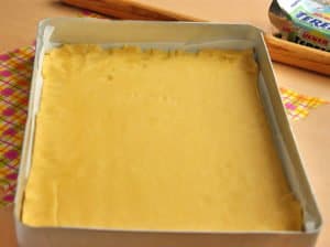Ciasto rozwałkuj na stolnicy i ostrożnie przełóż do blachy, nawijając na wałek. Wyrównaj je na dnie formy, w razie potrzeby wyklej ubytki palcami.