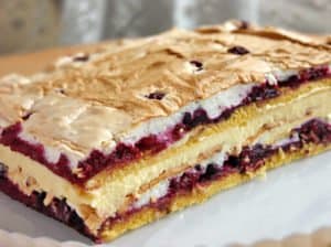 Rozgrzej piekarnik do temperatury 180° C i piecz w nim ciasto przez około 40 minut. Jeżeli wierzch pianki za bardzo się zarumieni, możesz ją przykryć folią.
