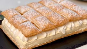 Jeśli planujesz uroczystość rodzinną, zdecydowanie spróbuj tego prostego i stosunkowo szybkiego deseru. W kremie pełnym kremu żółtkowego z bitą śmietaną w cieście francuskim zakochasz się już po pierwszym kęsie.