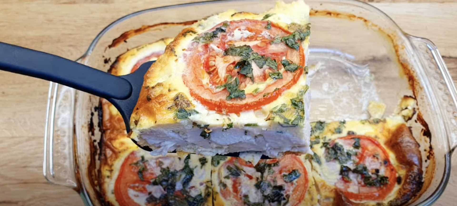 Pomidora trzeba pokroić w plasterku i ułożyć je na wierzchu. Posypać wszystko natką pietruszki.