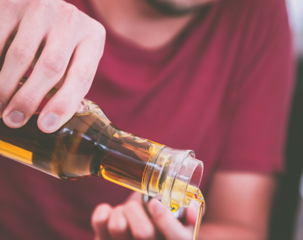 Kroimy również ogórki kiszone. Połącz oba składniki w misce. Dodaj ocet, olej i musztardę.