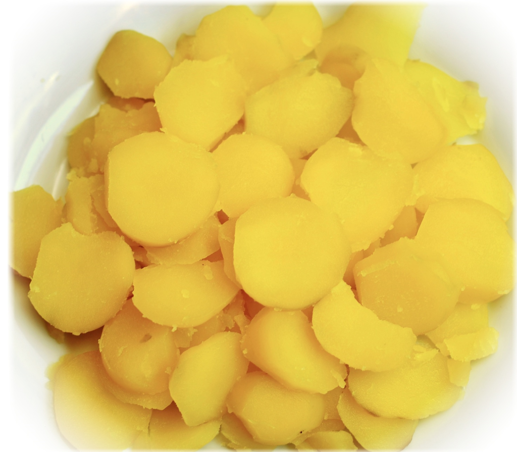 Obierz jeszcze ciepłe ziemniaki. Tniemy – możemy wybrać koła lub kostki. Dodaj do marynaty i wymieszaj.