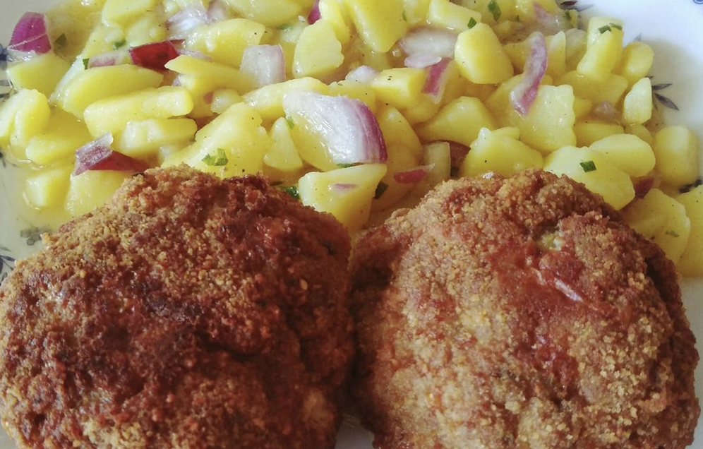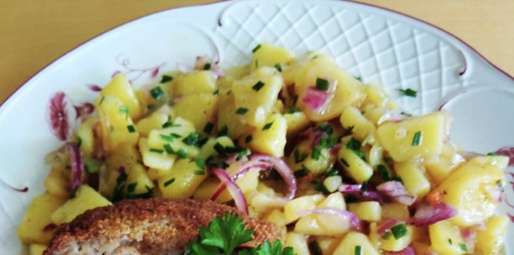 Obierz jeszcze ciepłe ziemniaki. Tniemy – możemy wybrać koła lub kostki. Dodaj do marynaty i wymieszaj.