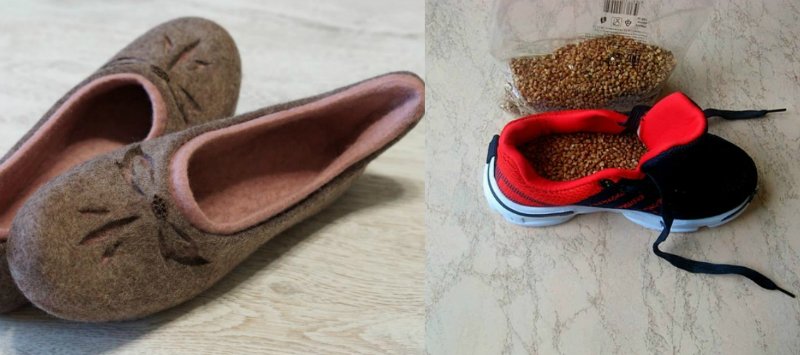 Drugi sposób to wsypanie ryżu lub kaszy do butów.