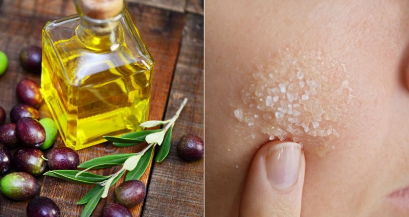 Zmieszaj łyżkę oliwy z dwoma łyżeczkami miodu i dodaj łyżeczkę rozgniecionej soli morskiej. Nałóż na skórę i po 15 minutach zmyj, a następnie zastosuj krem.