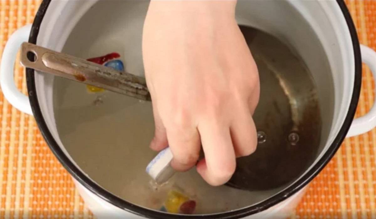 Następnie umieść brudną patelnię w rondlu.