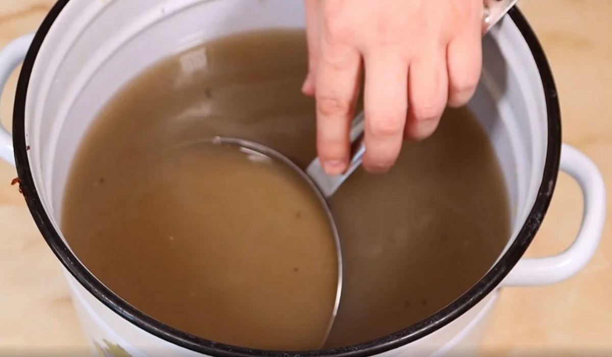 Podgrzewaj rondel w ten sam sposób, jak poprzednio, na kuchence przez około godzinę. Po upływie godziny zdejmij rondel z ognia i zeskrob wszelkie zanieczyszczenia.