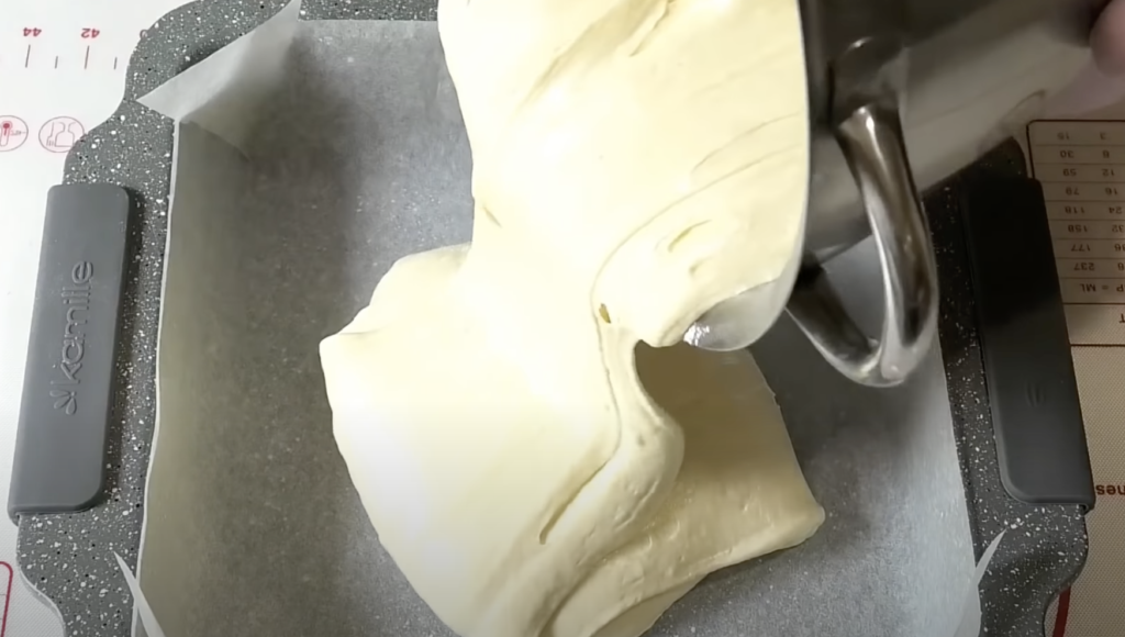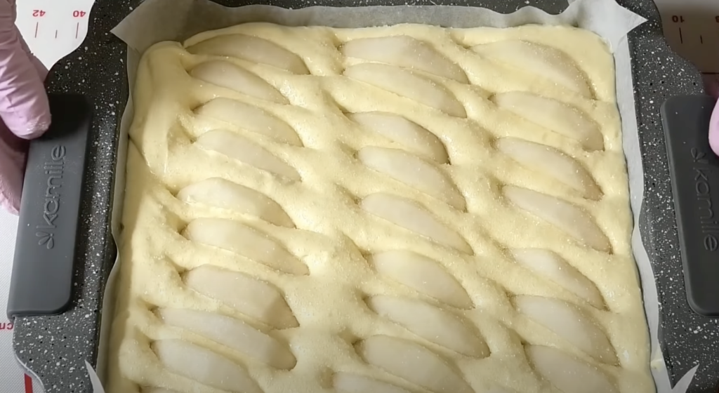 Ciasto wykładamy na blaszkę wyłożoną papierem do pieczenia.