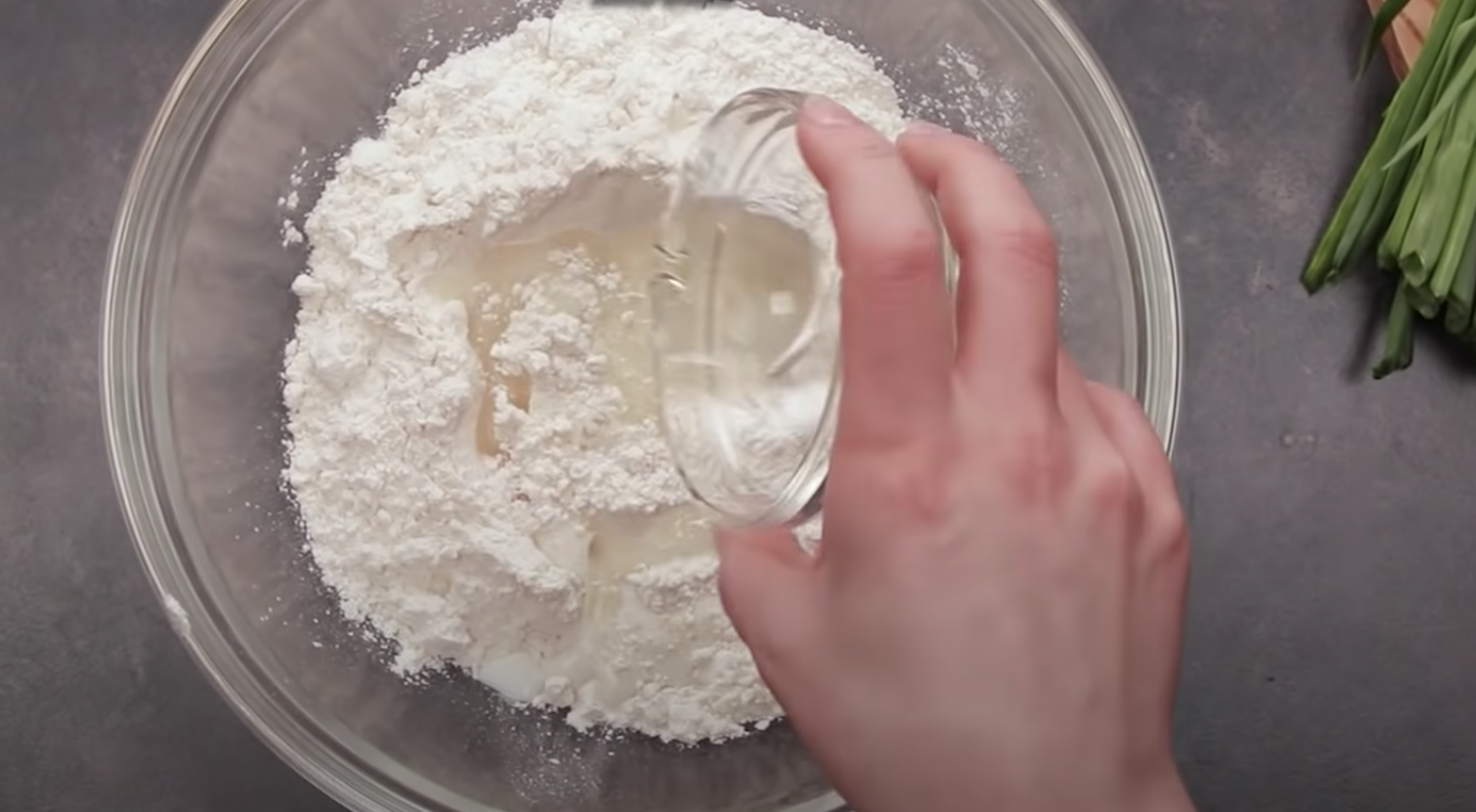 Dodaj sól, proszek do pieczenia i olej. Wymieszać, dodać mleko, śmietanę i wyrobić jednolite ciasto.