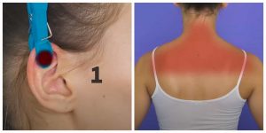pionowo w górnej części małżowiny usznej pomaga uśmierzyć dolegliwości bólowe w obrębie barków, górnej części pleców oraz karku.