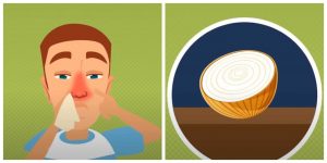 2. Niedrożny nos: będący problemem podczas zalegania w nim kataru. Sposobem jego udrożnienia jest położenie przekrojonej na pół cebuli w okolicy miejsca, w którym się śpi, co pomoże w rozluźnieniu dróg oddechowych.