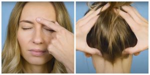 4. Migrena: chcąc zwalczyć ból migrenowy wystarczy masować przez około minutę 2 punkty. Jeden z nich znajduje się pomiędzy brwiami, natomiast drugi z tyłu głowy – należy rozłożone dłonie przyłożyć do czaszki i masować miejsca, do których przylegają palce.