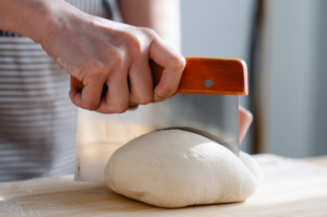 Zagnieść ciasto ręcznie. Ziemniaki pokroić w kostkę i dodać do garnka z wodą.