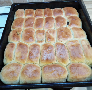 Zamykamy dobrze i zaokrąglamy. Ułóż je obok siebie na dobrze natłuszczonej blasze do pieczenia. Niech jeszcze chwilę wyrośnie.