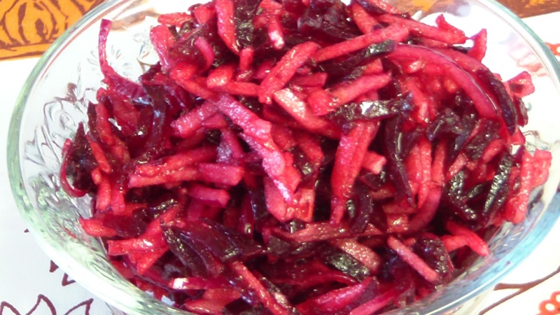 Obierz jabłka i buraki, a następnie zetrzyj na tarce i wymieszaj. Dodaj do nich pozostałe składniki – miód oraz sok z cytryny i pozostaw na 10 minut. Po tym czasie dodaj olej, odrobinę soli i dopraw ziołami.