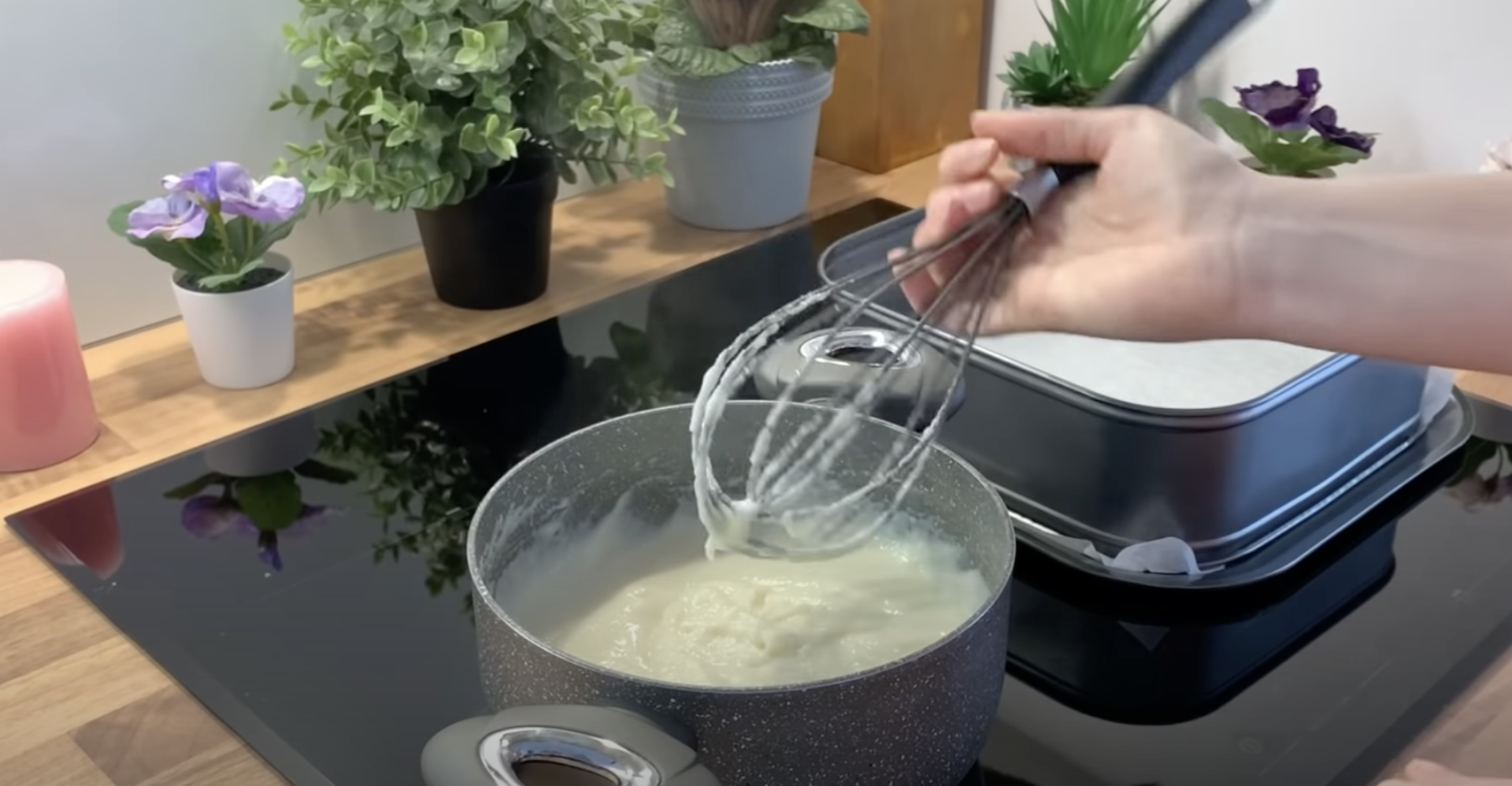 Teraz pora na drugi krem. Połącz budyń waniliowy i letnie mleko. Potem ugotuj całość, aż zgęstnieje.