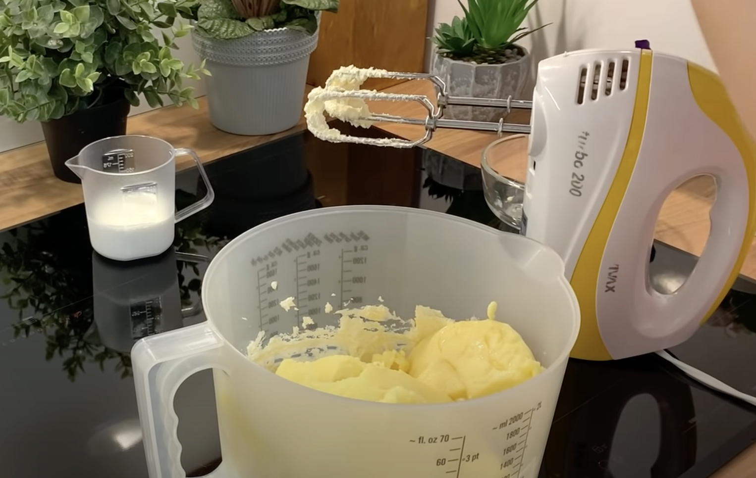 W ostatnim etapie utrzyj masło w miseczce. Zimny budyń oraz pół śmietanki pozwoli wrzucaj do pojemnika z masłem i ubij aż powstanie gładka masa.