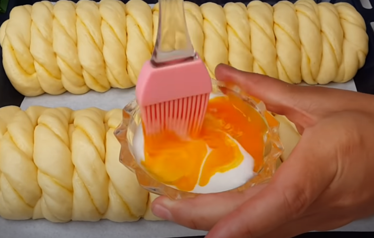 Złóż warkocze na blasze wyłożonej papierem do pieczenia, pozostaw do zakwaszenia. Posmaruj ubitym żółtkiem, które wymieszaliśmy wcześniej z łyżką kefiru. Posmaruj i piecz w nagrzanym piekarniku w temperaturze 160°C przez około 30-35 minut.