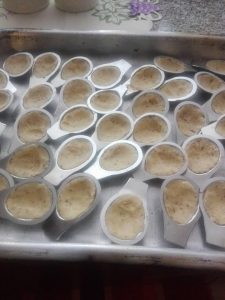 Zagniataj ciasto, aż powstanie ciasto. Następnie przygotowujemy foremki na orzechy. Nie namaszczamy ich!!! W każdą wciśnij kawałek ciasta, tak aby zrównało się z foremką i pozostawiło w środku wgłębienie.