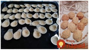 Połóż na blasze do pieczenia. Następnie pieczemy je w temperaturze 180 stopni przez 15 minut. Konieczne jest monitorowanie, ponieważ nie każdy piekarnik piecze w ten sam sposób. Upieczone orzechy wyjąć z foremek.