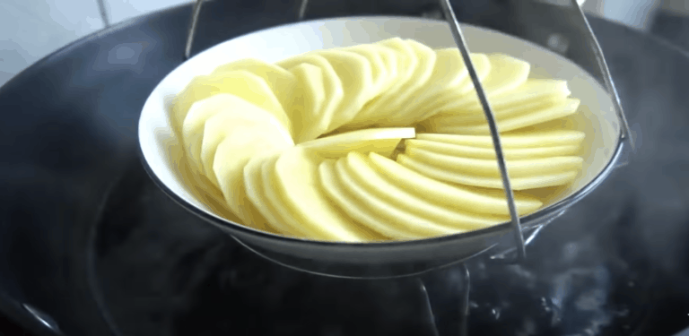 Nie sprawi Ci to żadnej trudności. Na początek należy ziemniaka obrać i pokroić w talarki. Następnie należy ugotować ziemniaczki: na parze lub klasycznie w wodzie.