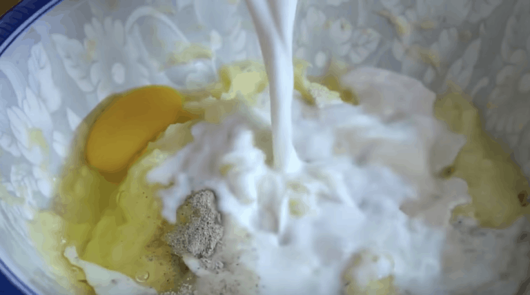 Z ugotowanego ziemniaka zrób puree, dodając przyprawy i drożdże, mleko i jajko. Przesiej dwie szklanki mąki do reszty składników.