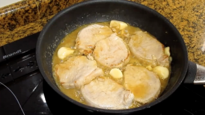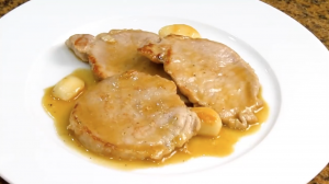 Kiedy wieprzowina jest gotowa, podawaj ją polaną sosem o smaku czosnkowym. Poza frytkami, krokietami i ziemniakami jako dodatek do dania możesz wybrać również ryż, makaron lub danie ze świeżych wypieków.