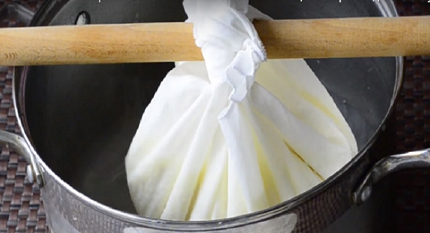 Twarożek na pierogi możesz wybrać o dowolnej zawartości tłuszczu. Jeśli ma w sobie dużo wilgoci, lepiej go odcisnąć. Aby to zrobić, włóż twaróg do gazy, zawiń i mocno ściśnij.