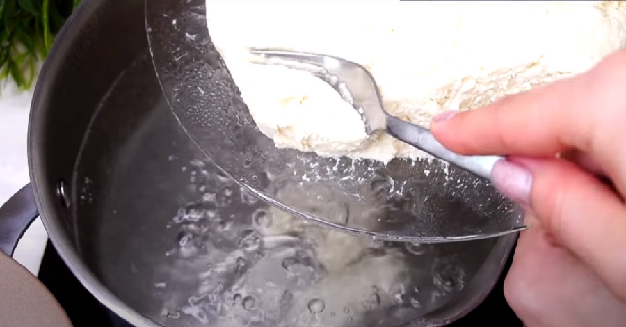 Zagotuj wodę na kuchence. Użyj zwykłej łyżki lub widelca, aby uformować leniwe pierogi z przygotowanej masy. Oddzielaj małe kawałki ciasta od warstwy i wrzucaj je do wrzącej wody.