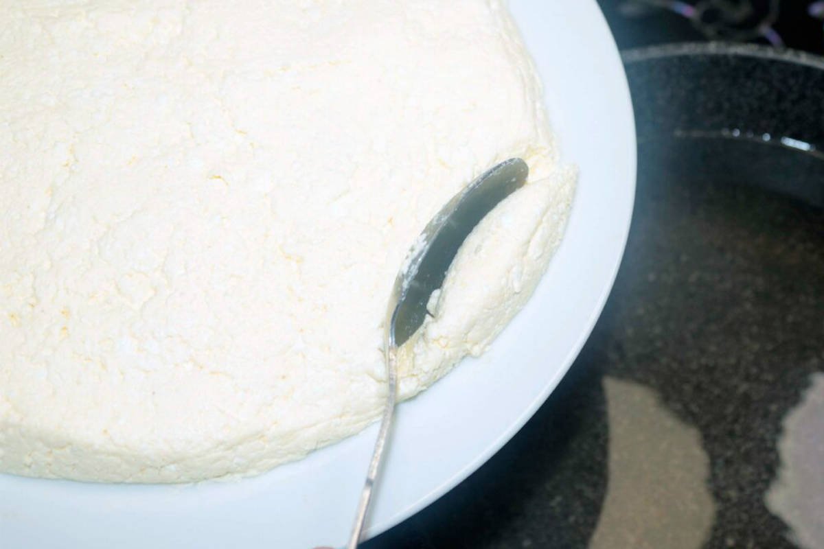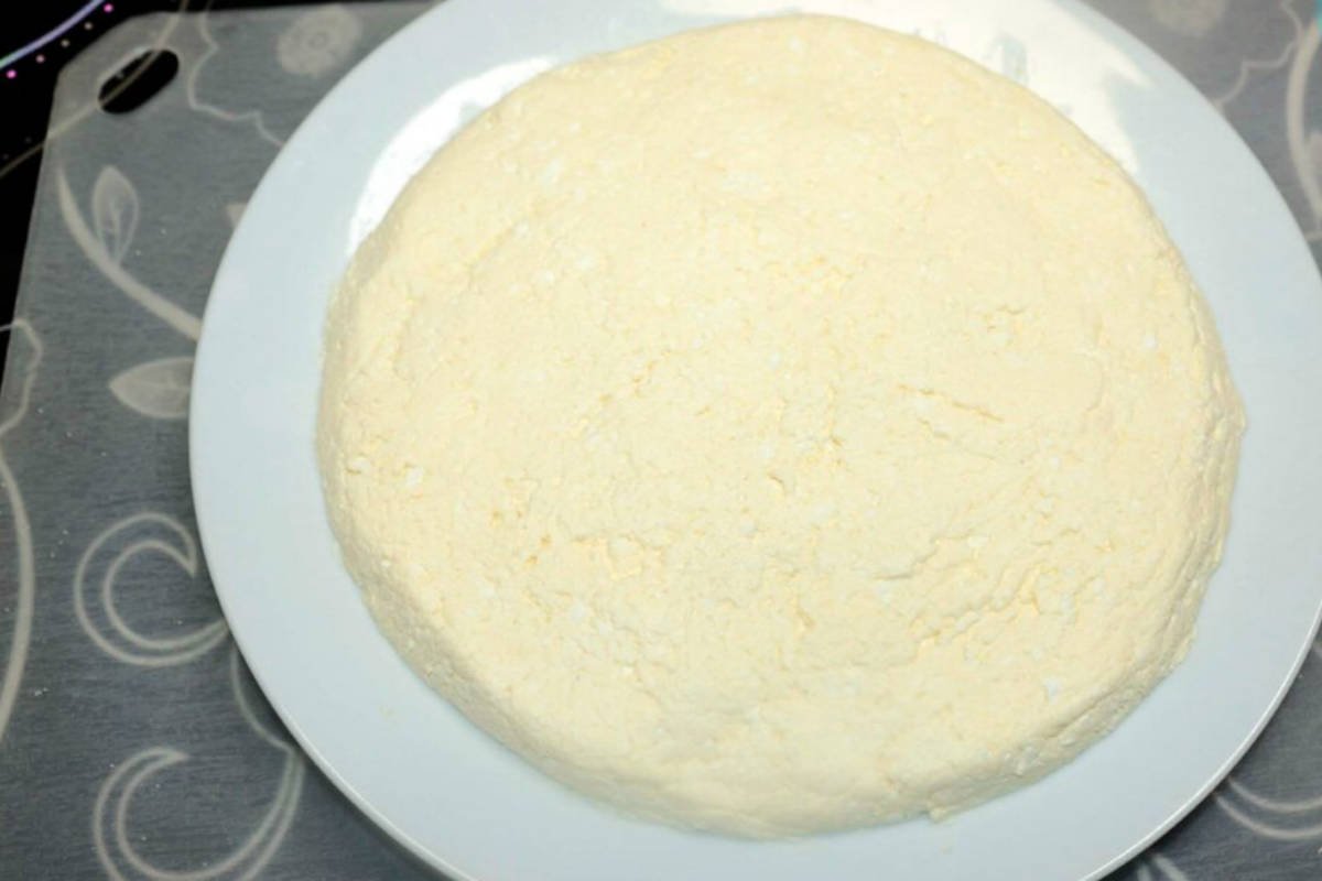 Najpierw zajmij się przygotowaniem twarogu. Jeśli jest bardzo mokry, odciśnij go z nadmiernej ilości wody. Możesz zrobić to przy pomocy gazy, składając ją kilkukrotnie i mocno zawijając w nią twaróg.
