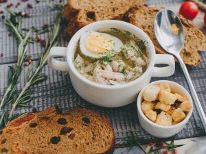 Mięso wyjmij z garnka i pokrój na niewielkie kawałki. Dodaj je do wywaru. Ugotuj jajko, przekrój je następnie na połowę, uprzednio obierając ze skorupki. Do talerza z jajkiem nalej zupy.