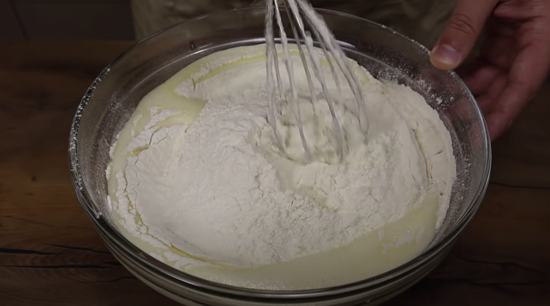 Następnie dodaj mokre składniki. Najpierw jajka i mleko, następnie olej. Mieszaj do uzyskania gęstej masy. Podziel gotową masę na dwie części.