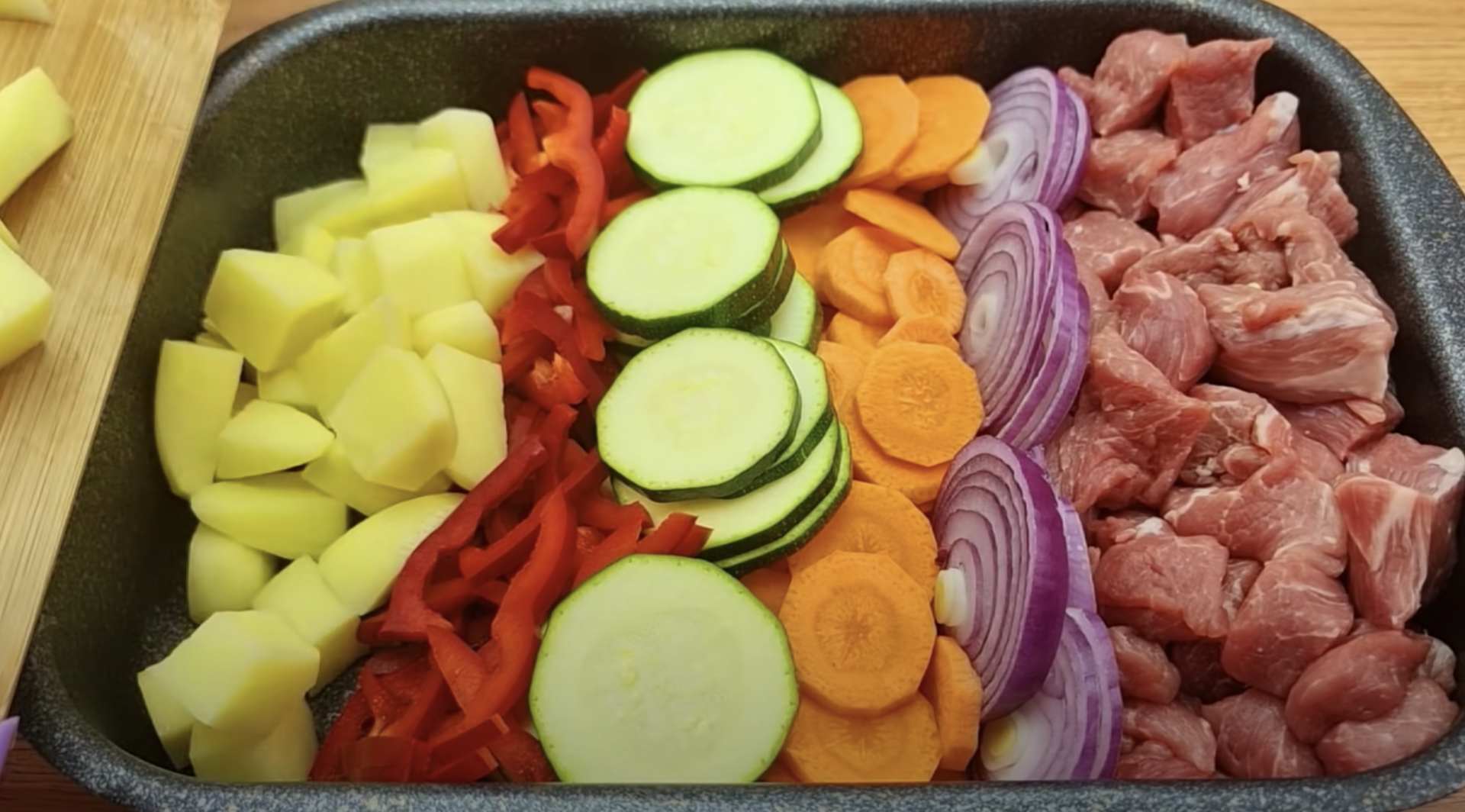 Przepisy kulinarne Przepis na aromatyczne mięso w towarzystwie warzyw – Idealny obiad dla całej rodziny. Last updated lis 9, 2022 21 Przepis na „jednogarnkowe” danie, które uwielbia cała rodzina. Aromatyczna potrawa z mięsa i warzyw pieczona na blasze w piekarniku. Składniki: 600 g wieprzowiny 1 marchewka 1 cebula 1 cukinia 1 papryka 5 ziemniaków Przyprawy: 1,5 łyżeczki soli 0,5 łyżeczki świeżo zmielonego czarnego pieprzu tymianek rozmaryn oregano 2 ząbki czosnku 100 g sera żółtego 5 łyżek oleju roślinnego koper Sposób przyrządzenia: WróćCzytaj dalej