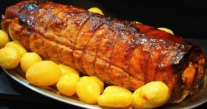 Podawaj roladę z sosem przygotowanym z pozostałości po pieczeniu, cebuli oraz mąki ziemniaczanej rozpuszczonej w wodzie.