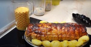 Posmaruj schab 1/3 marynaty i równomiernie rozprowadź.