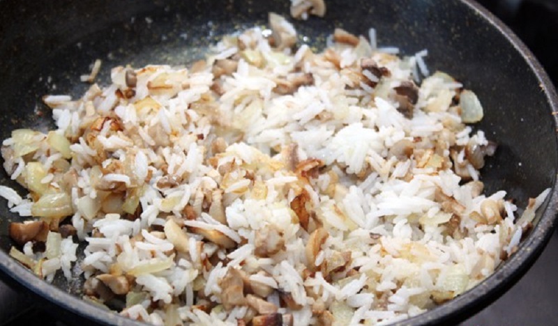 Dodaj przyprawy i ryż do pieczarek. Ostudź powstałą mieszaninę, a następnie zmiel blenderem.