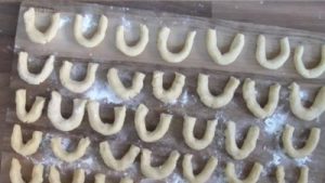 Z ciasta uformuj wałek o grubości około 1 cm i pokrój go na kawałki o długości 5 cm. Z przygotowanych kawałków ciasta stopniowo formuj bułki.