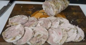 Wersja z kurczaka jest lżejsza, ale salceson z golonki wieprzowej zaspokoi głód. Przygotowanie w plastikowej butelce to łatwy sposób, aby uzyskać aromatyczny i delikatny smak. Ilość przypraw można dostosować do własnego gustu.