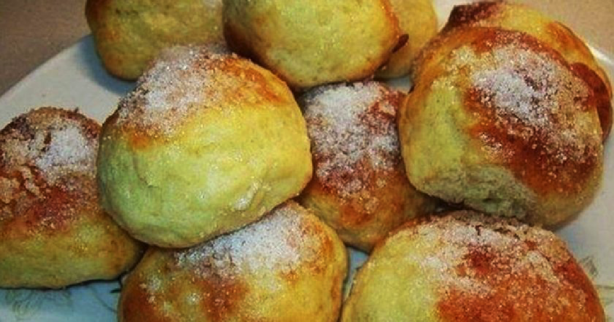 Mąkę wraz z proszkiem do pieczenia i mlekiem wymieszać w oddzielnym naczyniu, następnie połączyć zawartość obu misek i wyrobić na gładką masę. Z masy formować średniej wielkości kulki, ich wierzch smarować olejem.