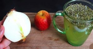 Przygotowanie naparu jest proste. Potrzebujesz 1 cebulę, 2 łyżki suszonego oregano, 1 jabłko i 400 ml wody. Jabłko umyj, przekrój na pół, usuń pestki i pokrój na kawałki. W garnku umieść cebulę, dodaj oregano, zalej wodą, przykryj i gotuj przez pięć minut.