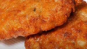 Przygotowane mięso smażymy na rozgrzanym oleju na umiarkowanym ogniu na złoty kolor z obu stron. Gotowe kotlety wyjmij z patelni na serwetkę i poczekaj, aż nadmiar tłuszczu odpłynie z nich. Następnie można je od razu podać z ziemniakami i surówką.