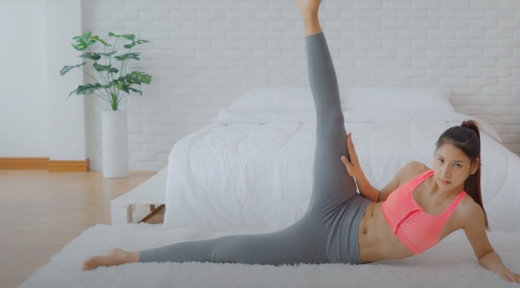 W tym ćwiczeniu należy położyć się na plecach i oprzeć na jednym łokciu. Wyprostuj nogi i unieś jedną nogę jak najwyżej. Przez ok. 30 sekund unoś nogę prosto do góry i powtórz ćwiczenie po przeciwnej stronie.