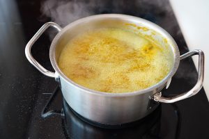 8. Gorący płyn przelewamy, zachowując ostrożność, do wcześniej przygotowanych, wysterylizowanych buteleczek lub słoiczków i zamykamy.