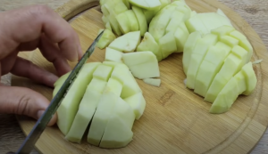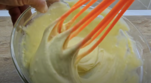 Po wymieszaniu do całości należy dodać proszek do pieczenia, mąkę.