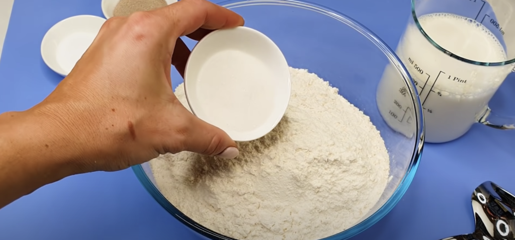 Wymieszaj drożdże i cukier w ciepłej wodzie.