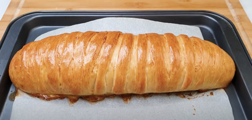 Jajkiem posmaruj ciasto na chleb. Piecz w piekarniku w temperaturze 200°C przez 25 minut.
