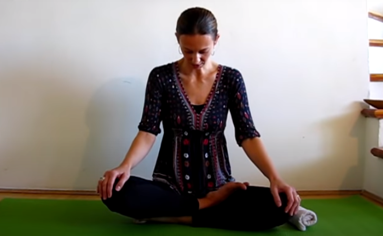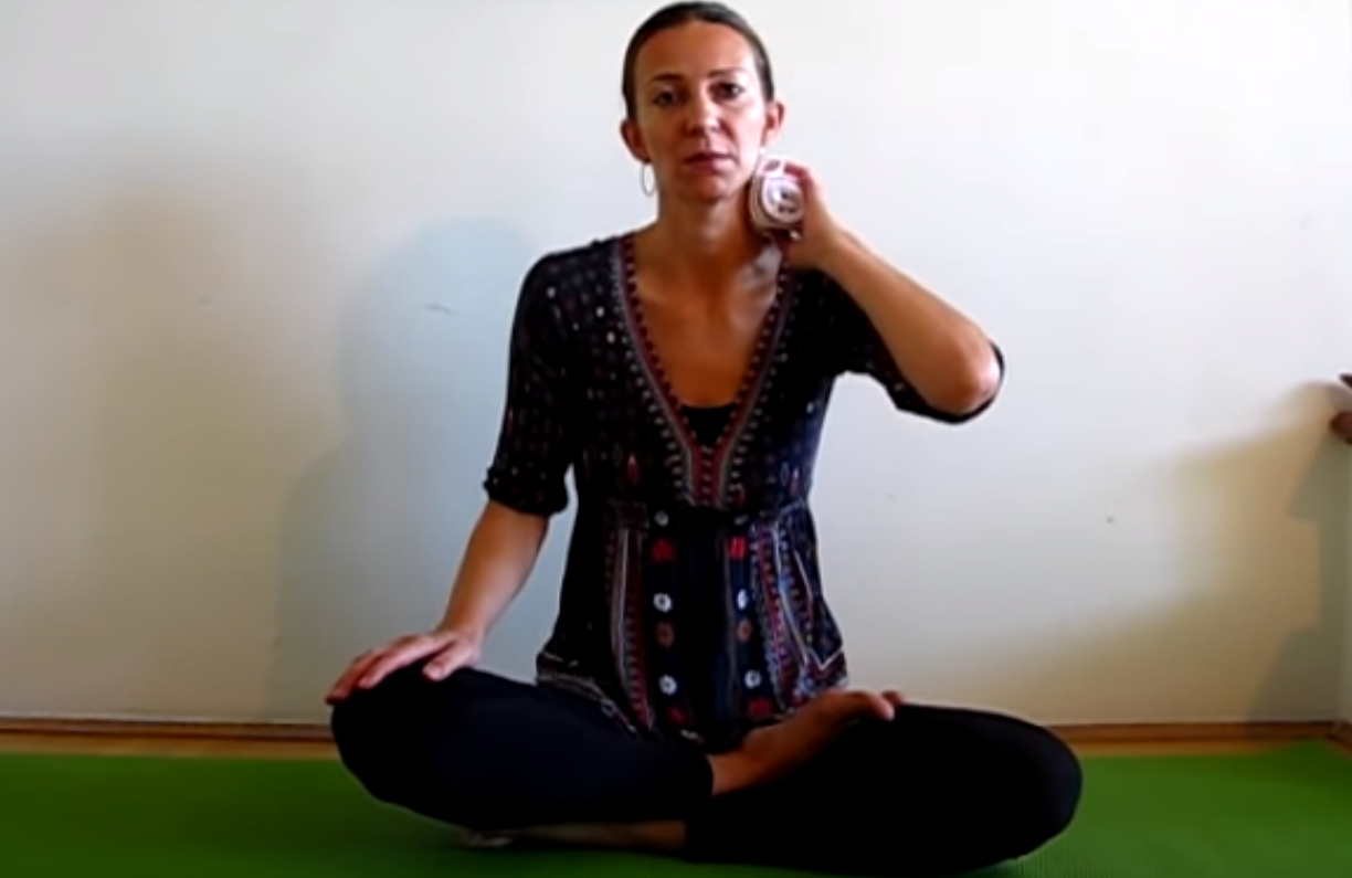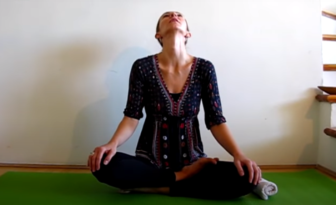 Przygotuj matę i usiądź na niej po turecku. Wyprostuj plecy, dłonie połóż na kolanach. Wdychając powietrze odchylaj głowę do tyłu, w trakcie wydechu przenoś głowę delikatnie do przodu. Ćwiczenie powtórz około 10 razy.