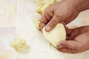 Przykrywamy folią i odstawiamy do wyrośnięcia na godzinę w ciepłe miejsce. Wyrośnięte ciasto podzielić na posypaną mąką stolnicę na 12 równych części. Uformuj z nich kulki, a następnie kotlety.