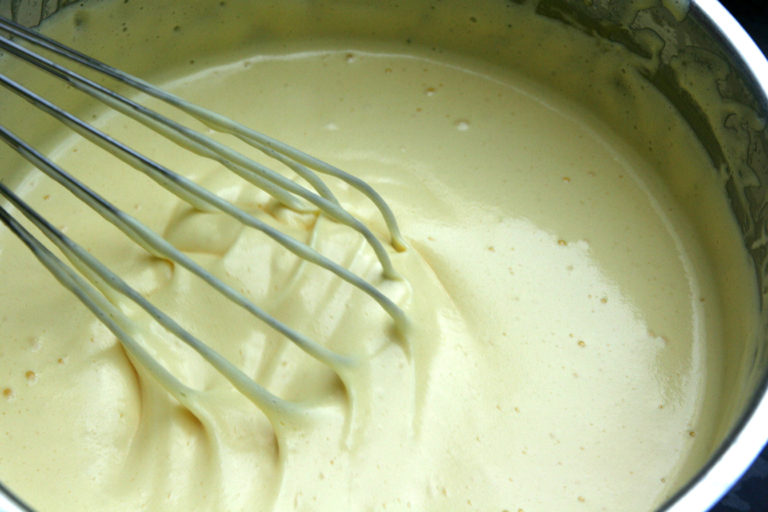 Teraz miękkie masło mieszamy za pomocą trzepaczki lub miksera i powoli dodajemy do schłodzonego kremu z jajek. Podczas dokładania masło należy cały czas mieszać krem.
