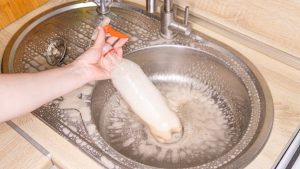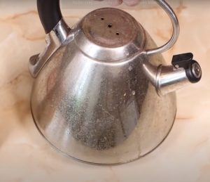 Następnie energicznie wstrząśnij butelką, aby składniki dobrze się połączyły. Zastosowanie tego środka czyszczącego jest efektywne na każdej powierzchni. Na przykład, zobacz jak skutecznie oczyścił mój czajnik.